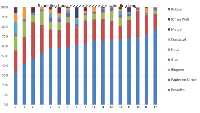 Hogescholen die steeds een stapje verder gaan met de afvalscheiding halen de hoogste afvalscheidingspercentages. Zo startte de Haagse Hogeschool een pilot met een zogenaamde twijfelbak in hun kantoren, die los staat van de overige afvalstromen. Daardoor daalde het aandeel restafval in de pilot van 25% naar 6%.