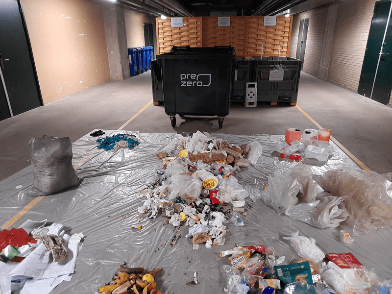 De eerste actie van de zero waste projectleider was inzicht krijgen in de afvalinzameling. Voor alle campusgebouwen van de universiteit dook hij met medewerkers en studenten in het afval. Een aanzienlijk deel van het restafval bestond volgens de afvalsorteeranalyse nog uit waardevolle stromen zoals GFE, koffiedik, PD, papier en karton en andere recyclebare materialen. Ongeveer 63% bleek nog recyclebaar, de resterende 37% was echt restafval. Dit onderstreept het belang van goede afvalscheiding en bewuste inkoopkeuzes.